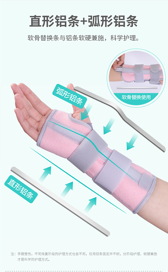 秝客腕關(guān)節(jié)固定帶,直形鋁條+弧形鋁條,軟骨替換條和鋁條軟硬兼施,科學護理;吊帶提拉固定,減輕承重,以免手腕長時間下垂造成充血