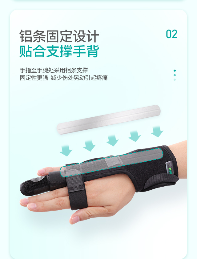 1、鋁條固定設(shè)計(jì),貼合支撐手背,固定性更強(qiáng)