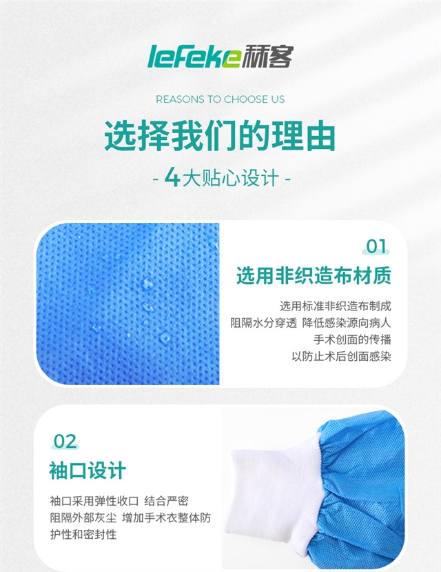 秝客一次性手術衣,資質(zhì)齊全,雙向防護,柔軟透氣,環(huán)氧乙烷滅菌,適用于食品工廠、寵物店、實驗室等場景
