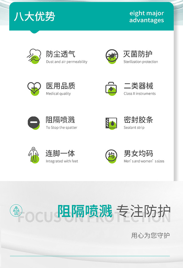 秝客醫(yī)用一次性防護(hù)服,二類醫(yī)療器械,醫(yī)用品質(zhì),滅菌防護(hù),防塵透氣,阻隔噴濺,適用于醫(yī)療防護(hù)、實(shí)驗(yàn)研究、無塵車間等場(chǎng)景